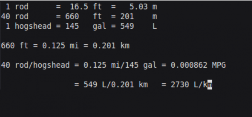 My car gets forty rods to the hogshead